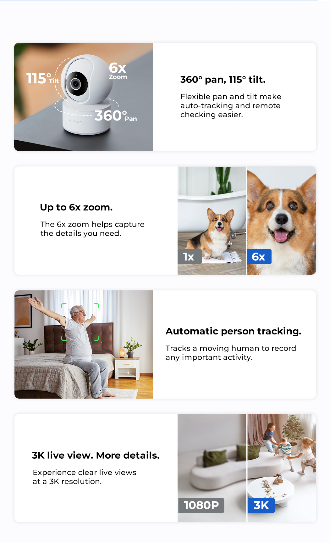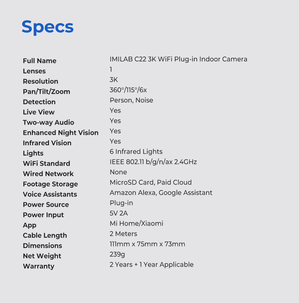 IMILAB C22 to kamera IP wewnętrzna, która dzięki swoim możliwościom będzie przydatnym pomocnikiem w ochronie twego dobytku. Kamera także świetnie pełni rolę elektronicznej niani.
