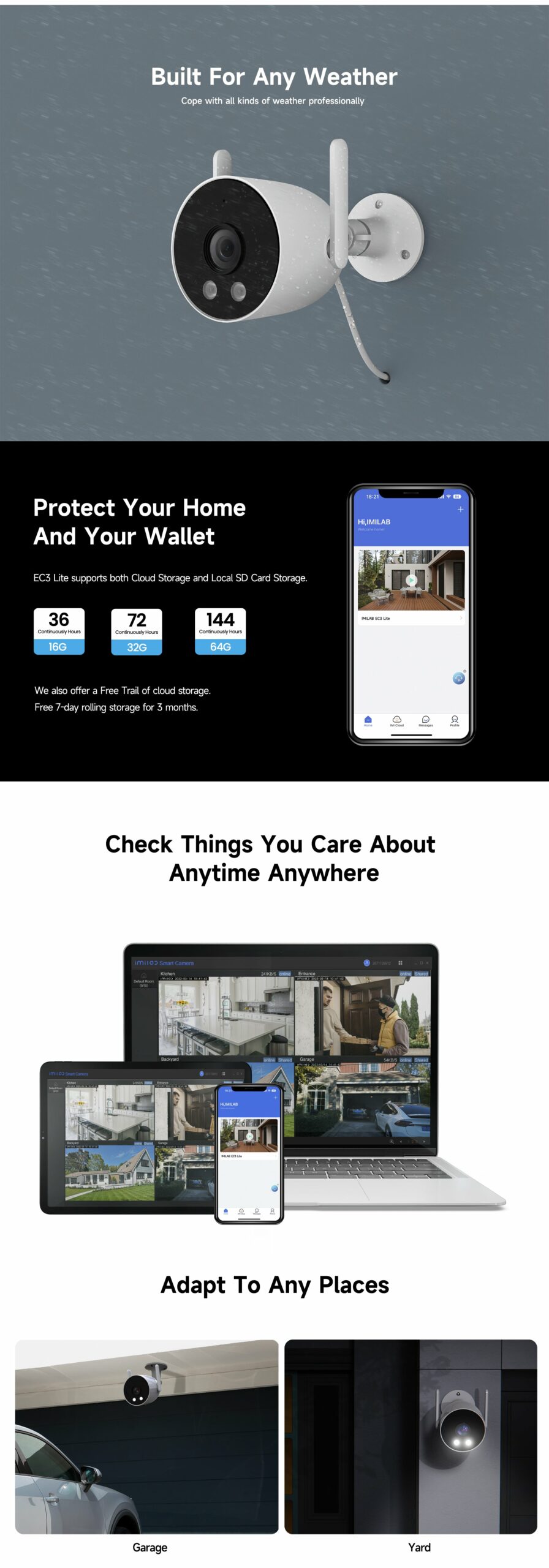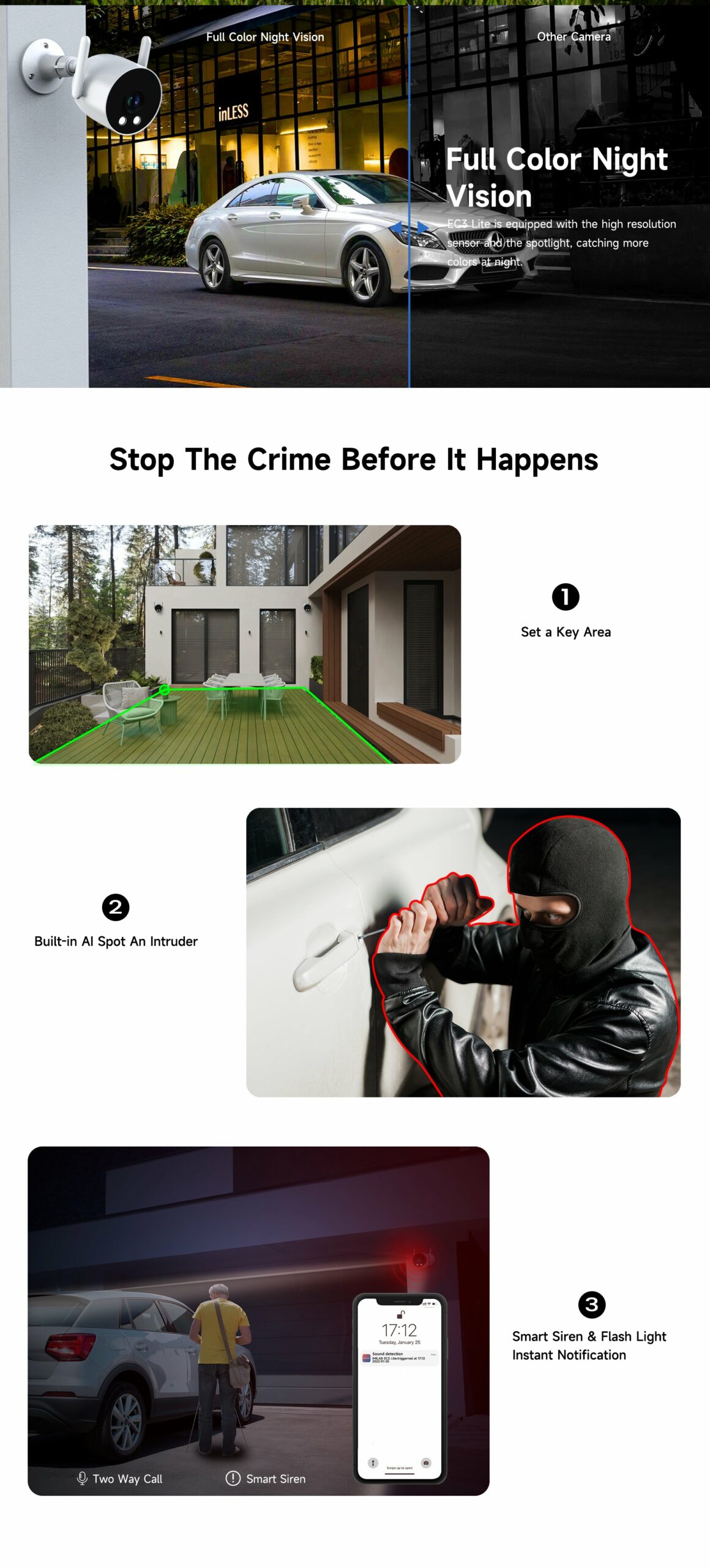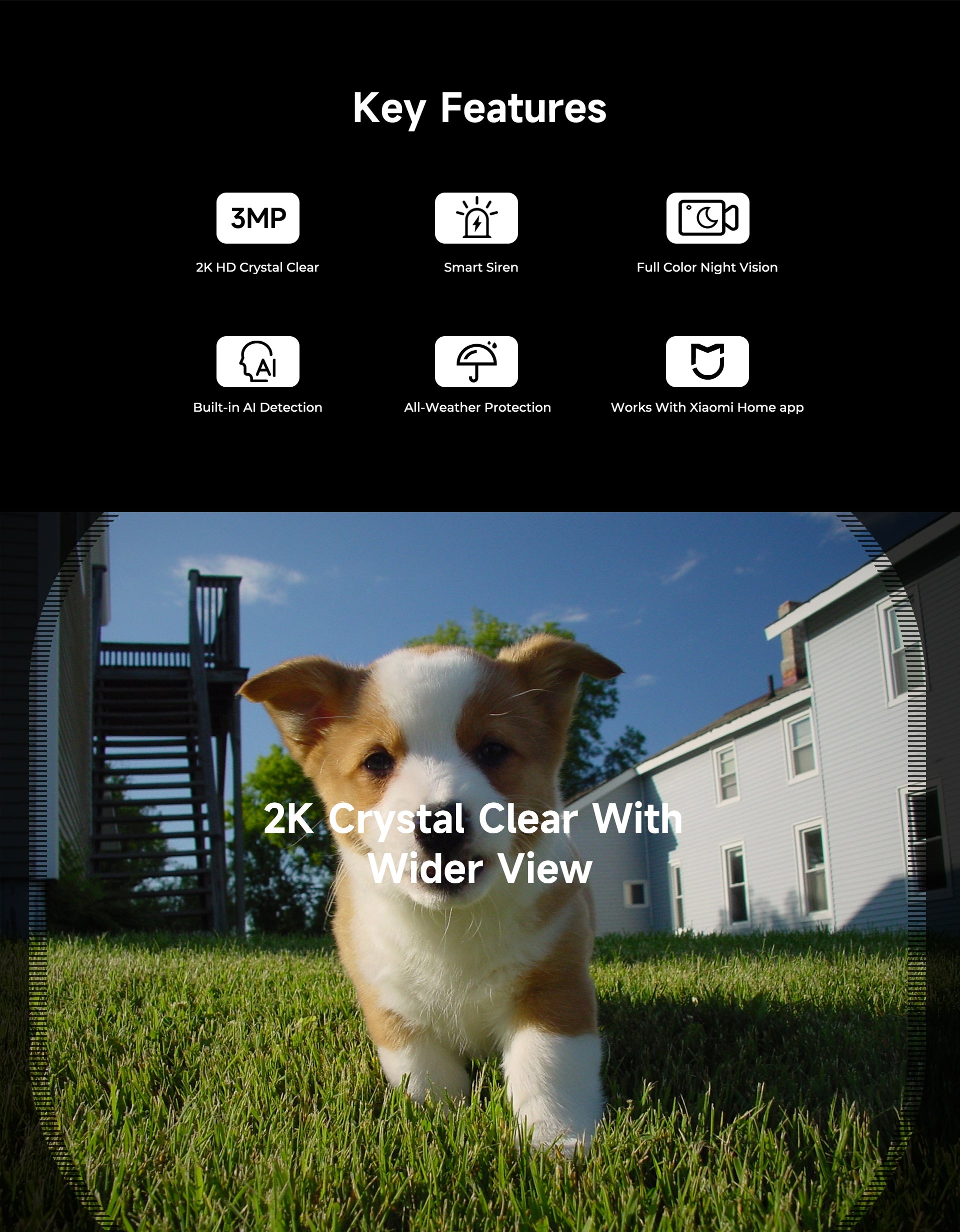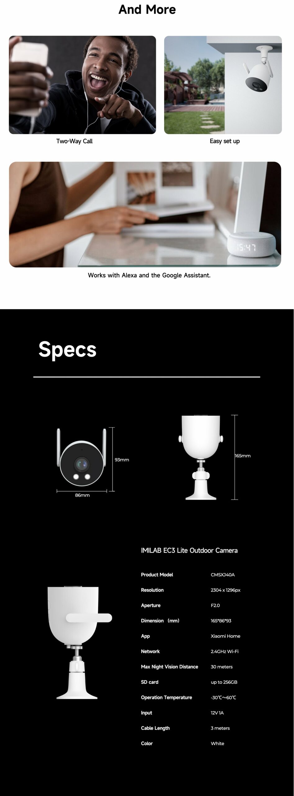 The IMILAB EC6 Dual 2K+2K is a two-lens spotlight camera, each lens with a 2K resolution. This allows it to cover two different angles at the same time, providing complete security and convenience with double coverage.