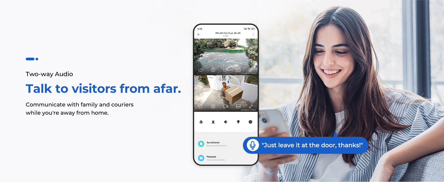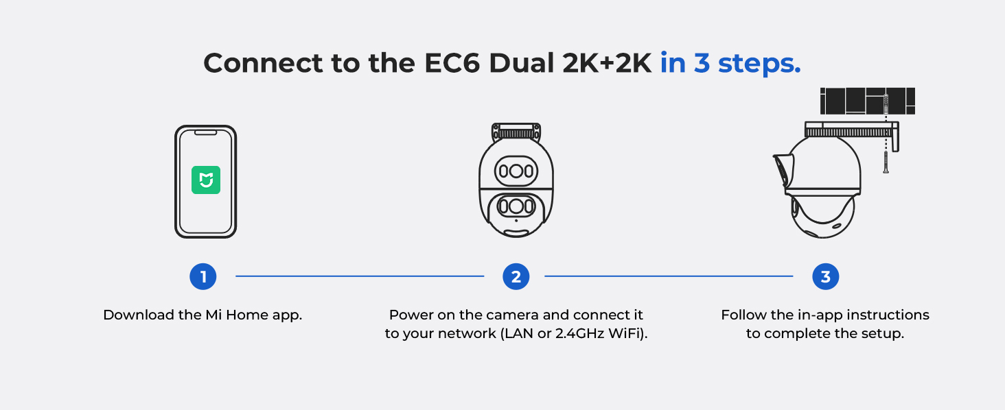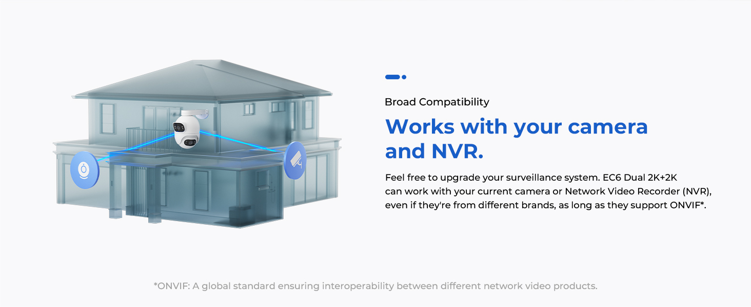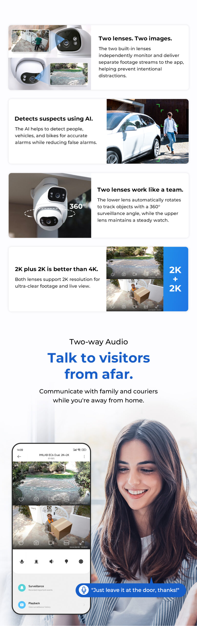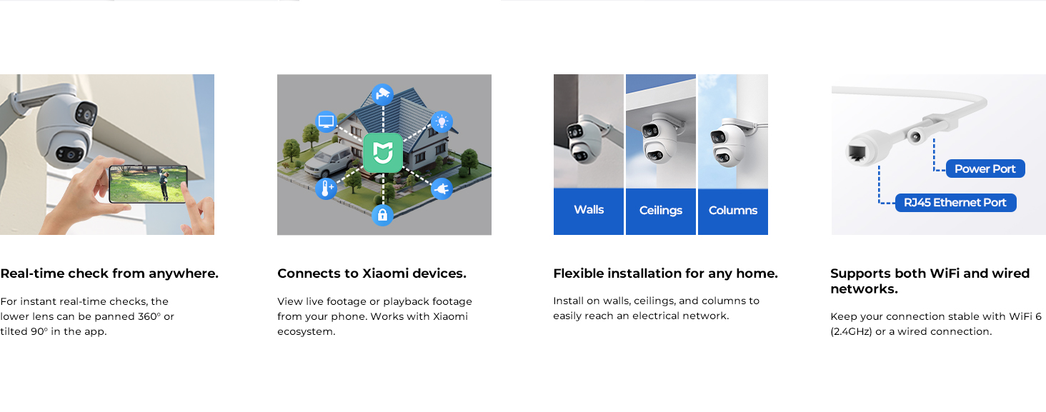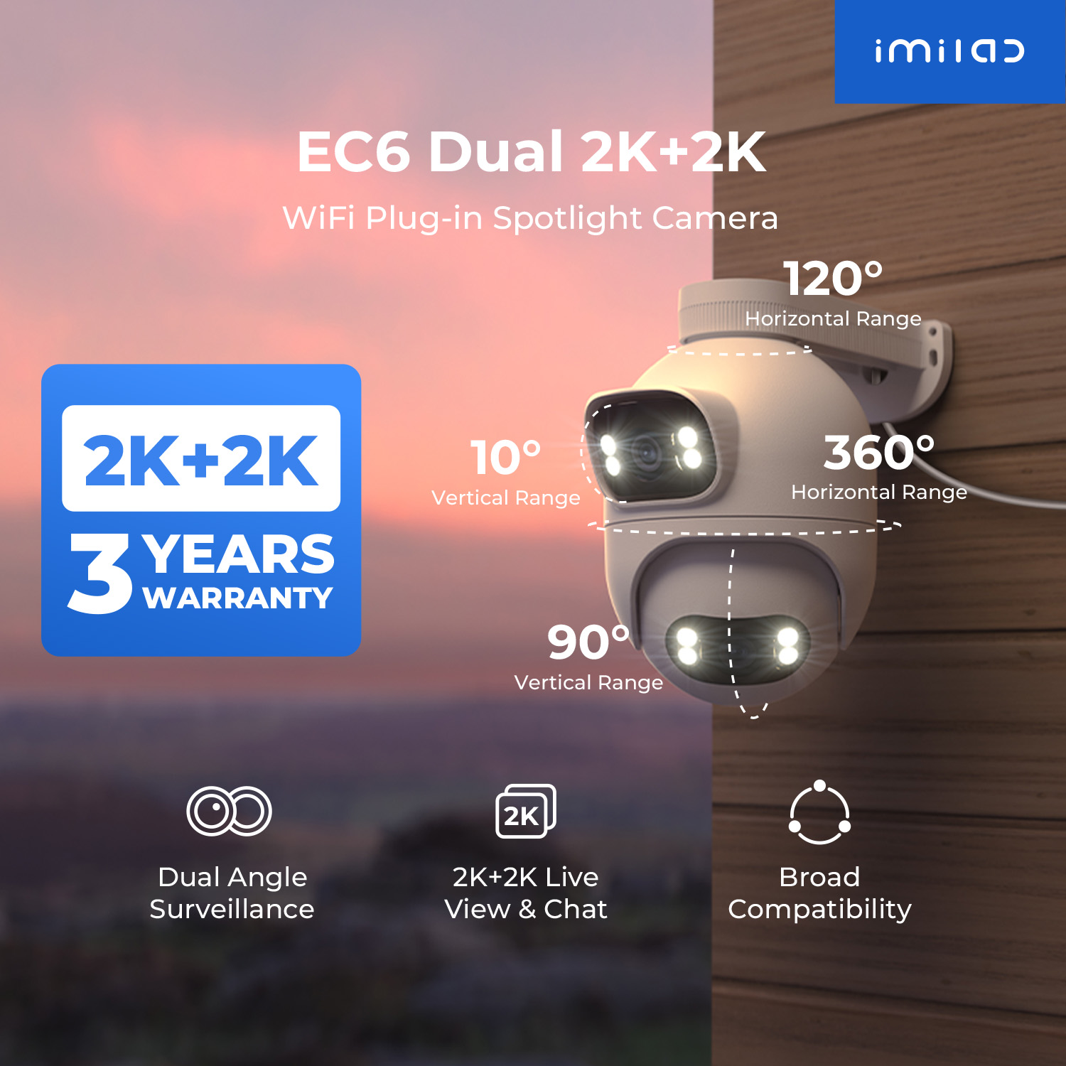 The IMILAB EC6 Dual 2K+2K is a two-lens spotlight camera, each lens with a 2K resolution. This allows it to cover two different angles at the same time, providing complete security and convenience with double coverage.