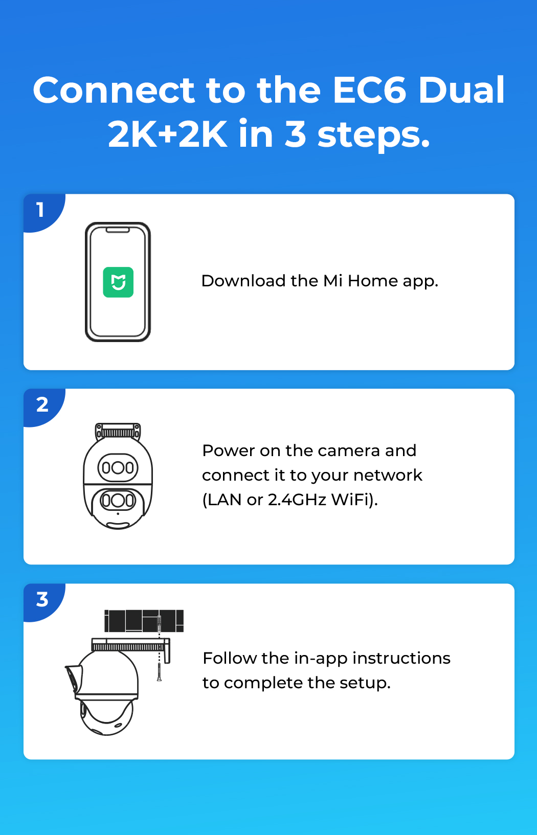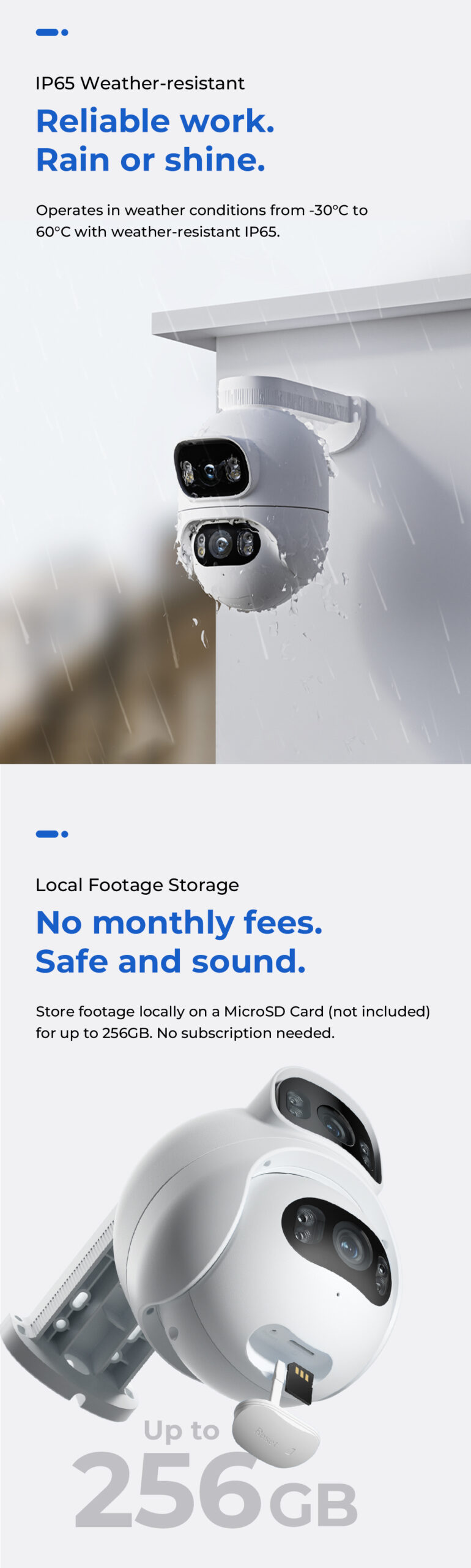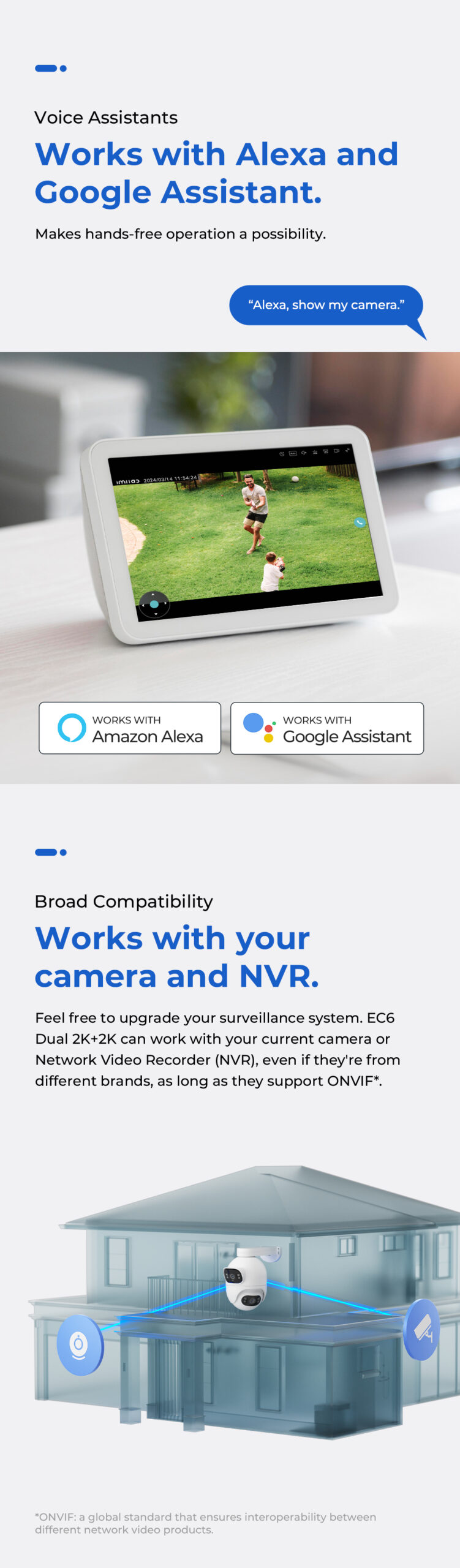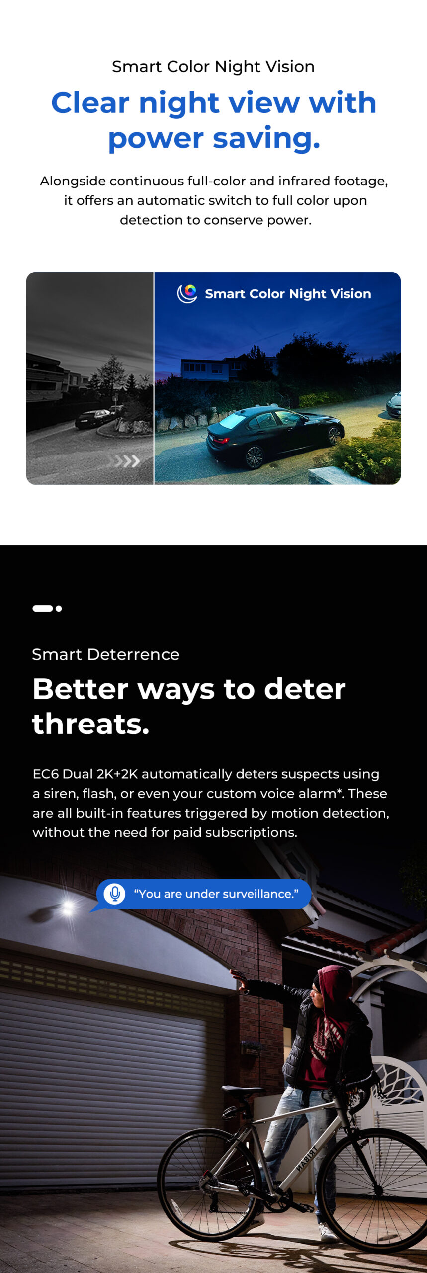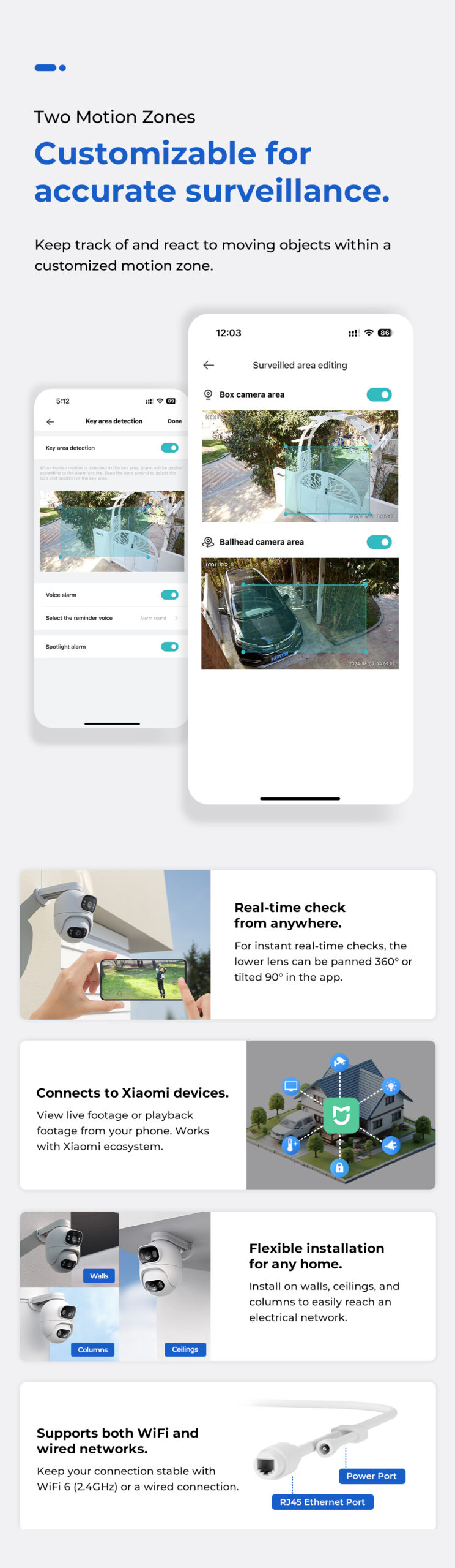 The IMILAB EC6 Dual 2K+2K is a two-lens spotlight camera, each lens with a 2K resolution. This allows it to cover two different angles at the same time, providing complete security and convenience with double coverage.