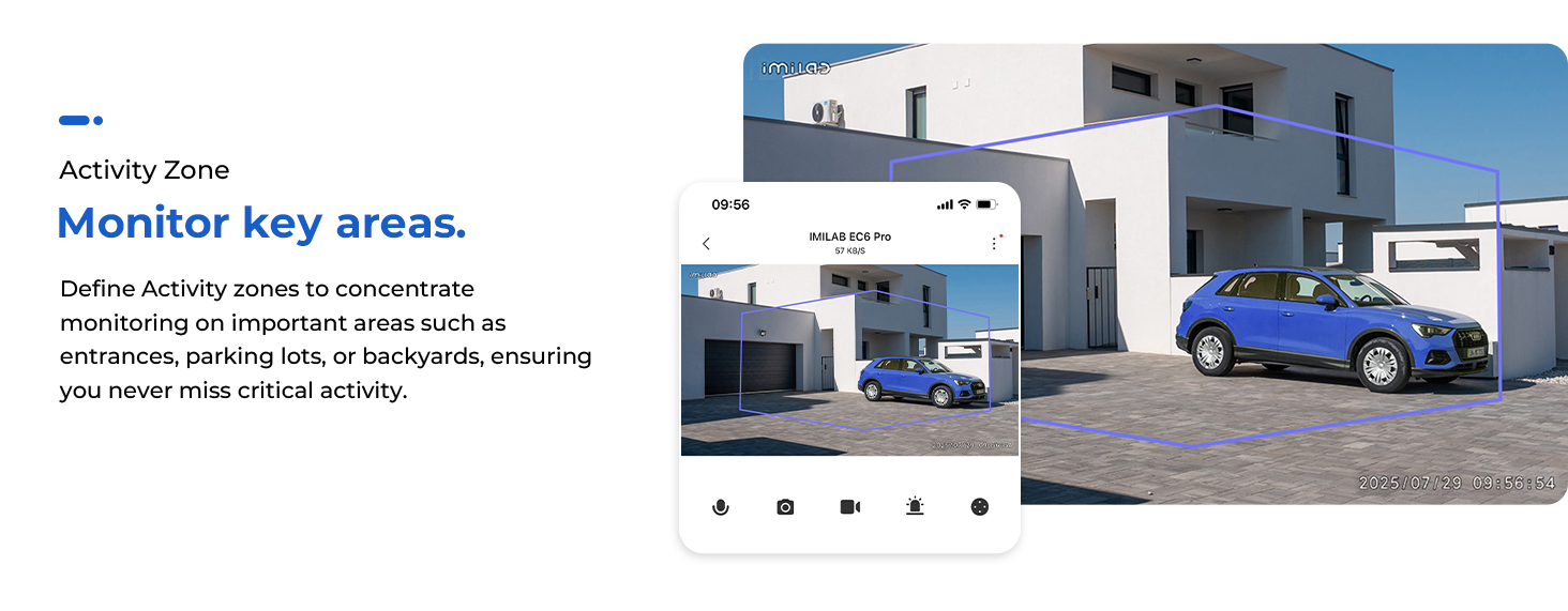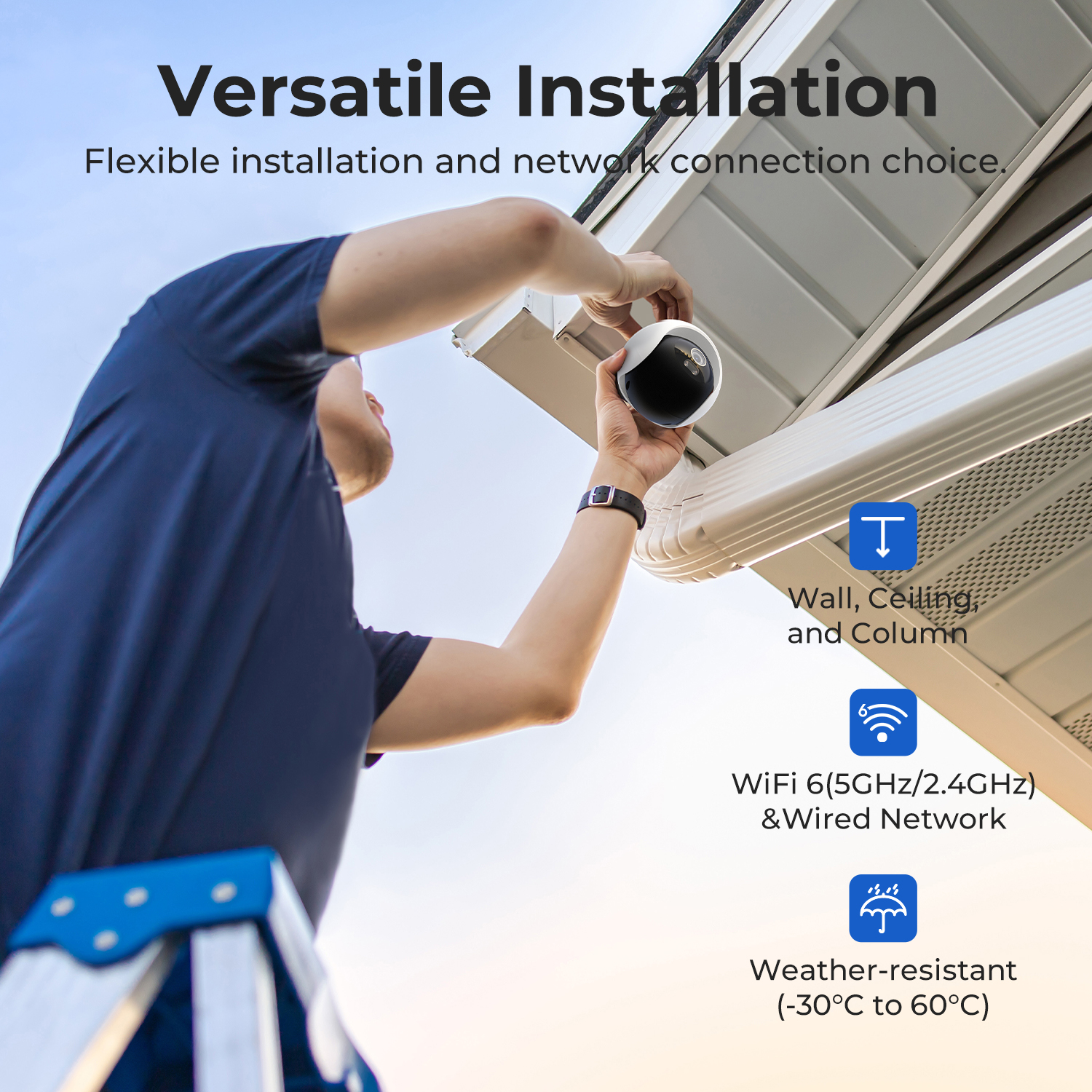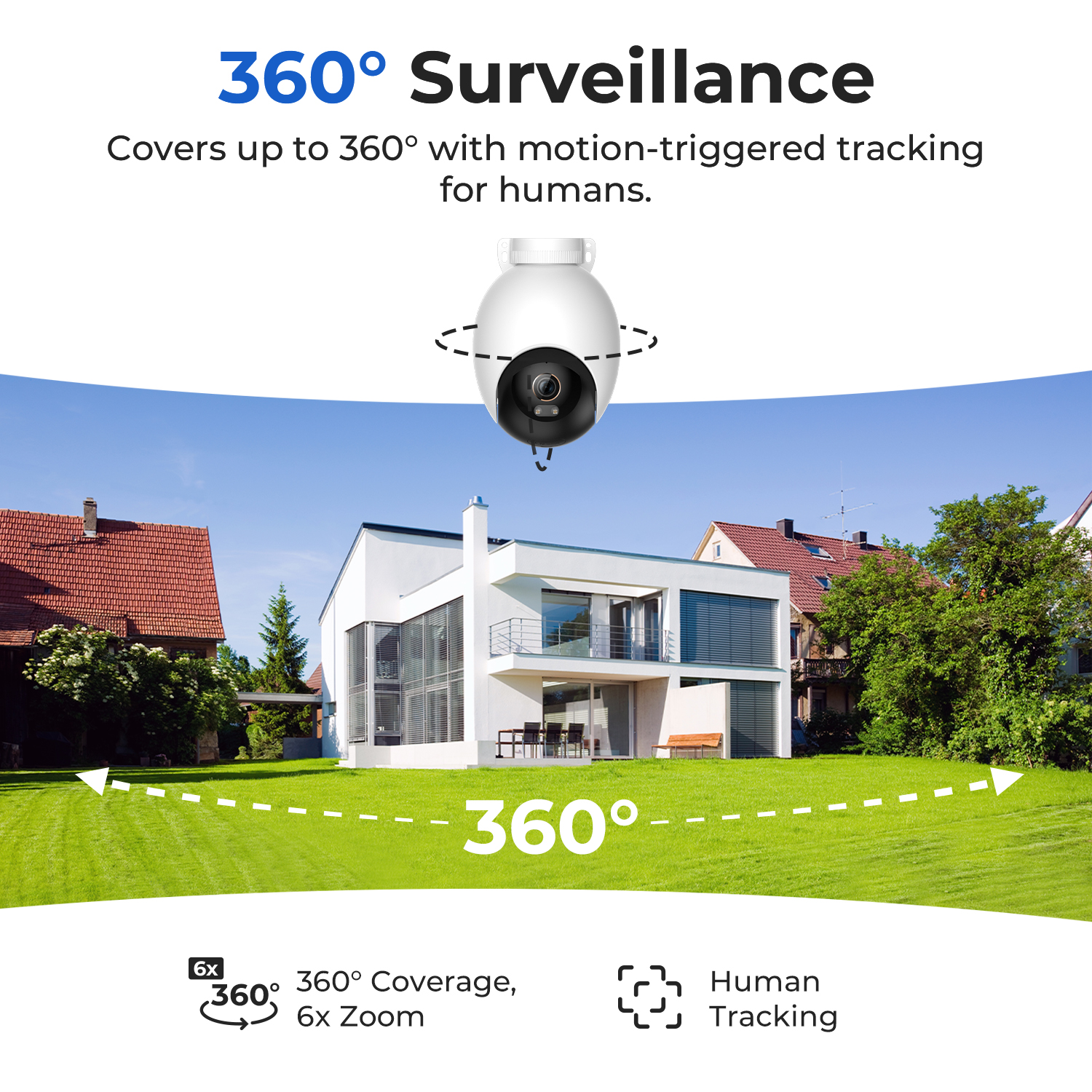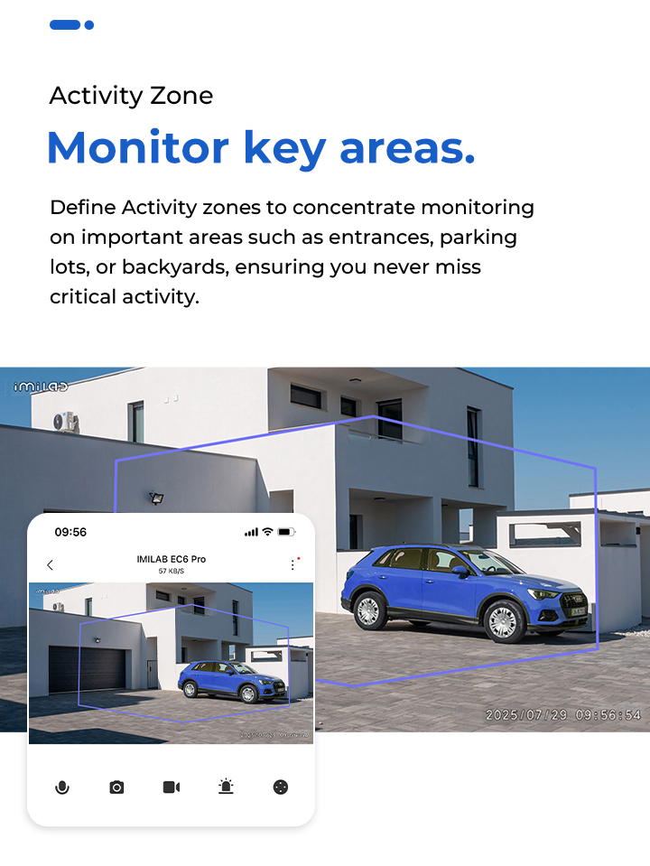 The IMILAB EC6 Pro is a 4K turret camera that delivers sharp 8MP video and 360° coverage for reliable outdoor monitoring. Its advanced local AI accurately detects people, vehicles, pets, bikes, and even fire or smoke (beta)—triggering instant alerts, a built-in siren, and strobe lights to actively deter intruders. Supporting both wired networks and Wi-Fi 6 (5GHz/2.4GHz), along with flexible storage options and voice assistants, it’s the ideal always-on guardian for your home.