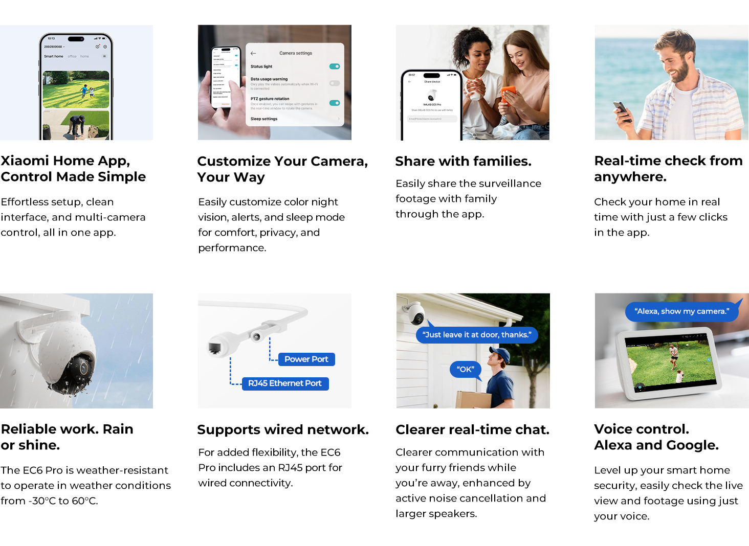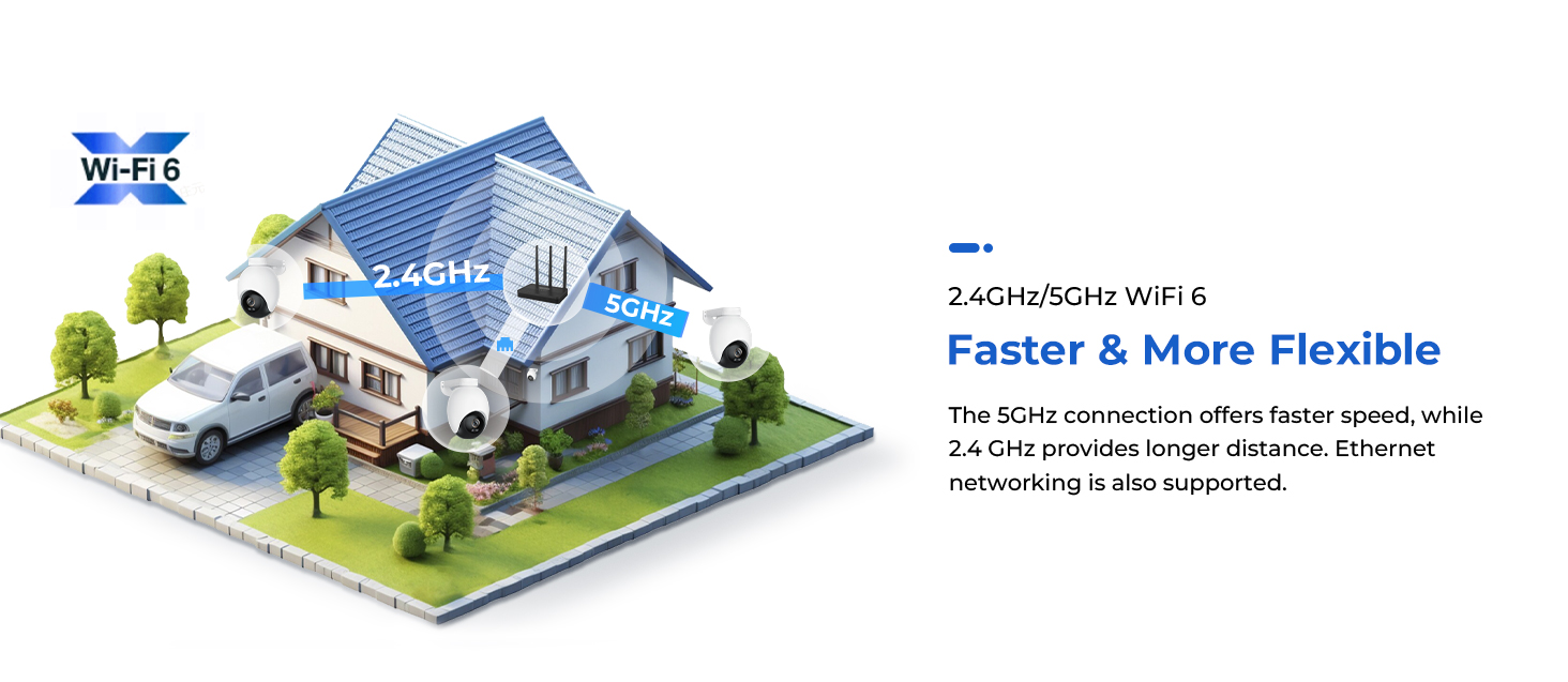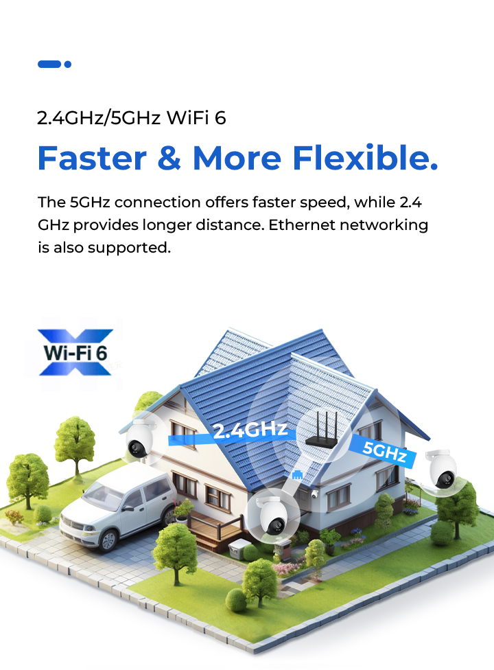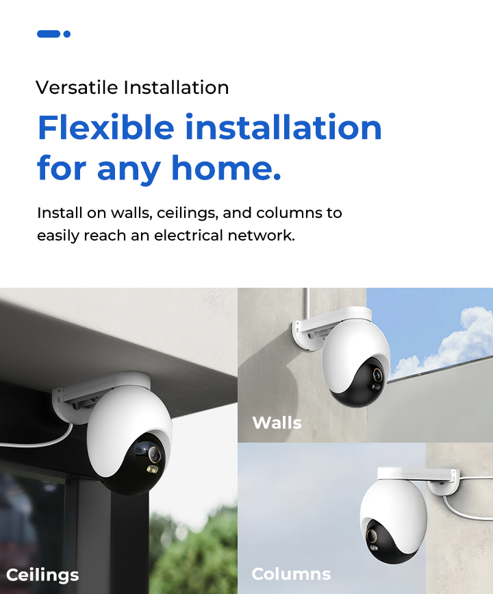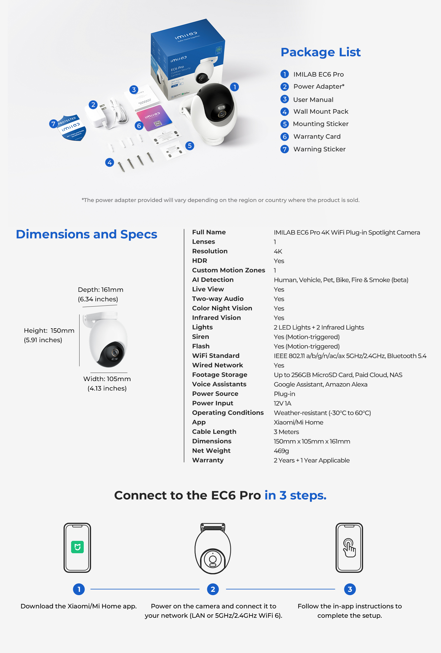 The IMILAB EC6 Pro is a 4K turret camera that delivers sharp 8MP video and 360° coverage for reliable outdoor monitoring. Its advanced local AI accurately detects people, vehicles, pets, bikes, and even fire or smoke (beta)—triggering instant alerts, a built-in siren, and strobe lights to actively deter intruders. Supporting both wired networks and Wi-Fi 6 (5GHz/2.4GHz), along with flexible storage options and voice assistants, it’s the ideal always-on guardian for your home.